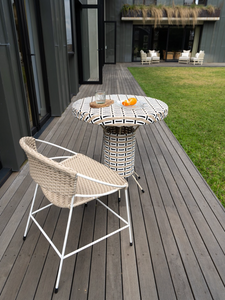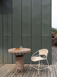 A woven bistro size dining table with powder coated steel frame. Handwoven by our talented artisans. Their knowledge, care and skills ensure that every D&D furniture piece is finished with exceptional quality.