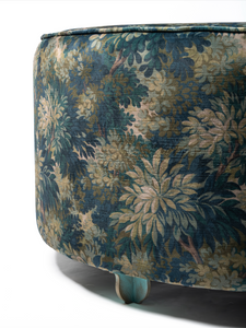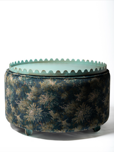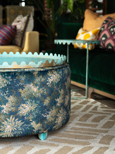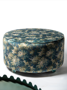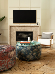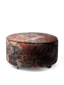 Round Ottomans in a luxe velvet fabric with charming metal feet in our Oxidized finish. Serves as a coffee table when paired with our Dolly Tray and nests wonderfully with our Dolly Side Table too. (Dolly Tray and Side Table sold separately).